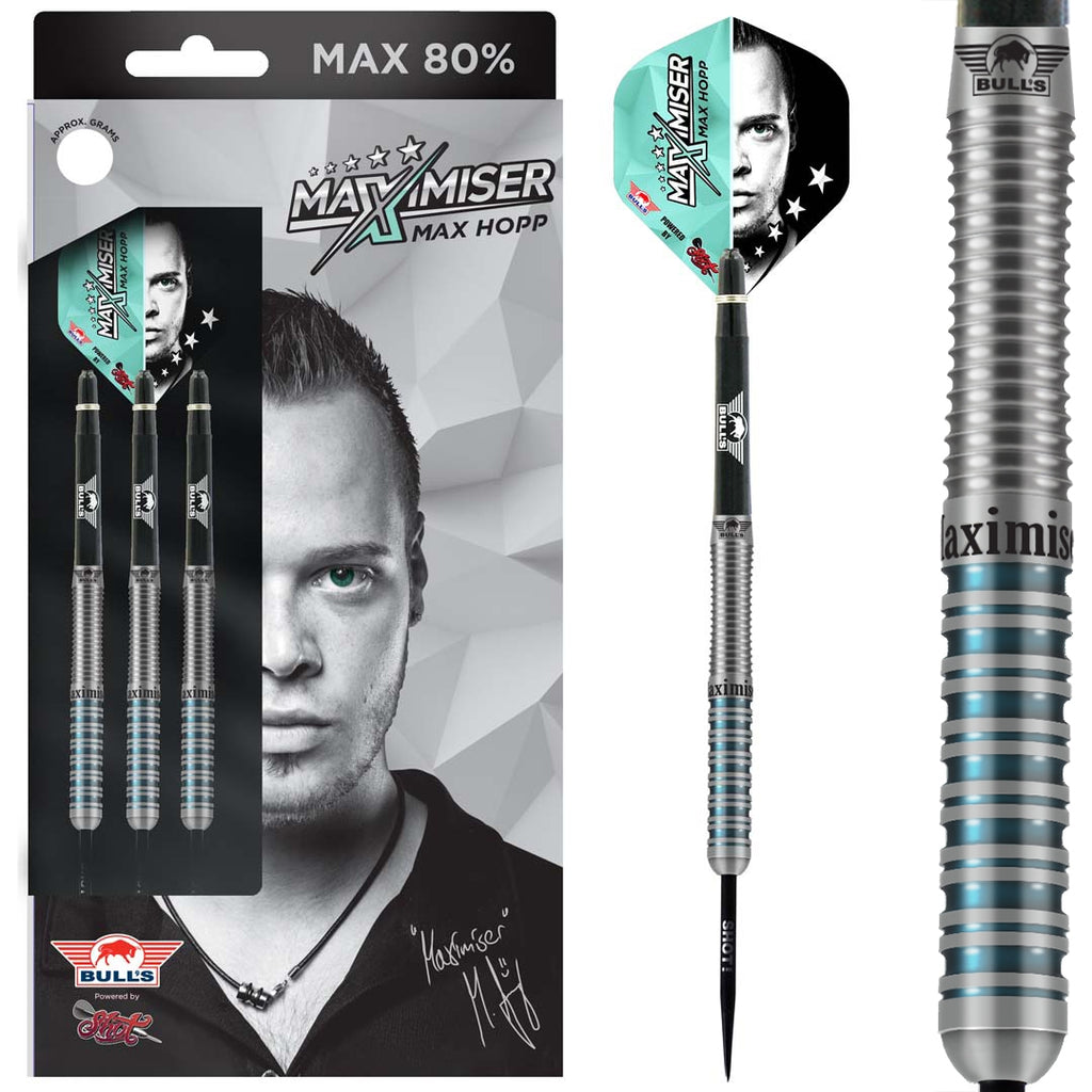 De Max Hopp 80% Steel 24g Dartpijlen zijn iets zwaarder, wat ze ideaal maakt voor darters die meer controle en stabiliteit willen bij hun worpen. Gemaakt van 80% tungsten, bieden ze een slank ontwerp en uitstekende grip, waardoor ze perfect zijn voor darters die hun precisie willen verbeteren.